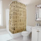 Esta cortina de chás única e na moda apresenta um padrão hieróglifo egípcio. Os hieróglifos são exibidos em um padrão horizontal no tapete como se fosse um manuscrito ou documento antigo. O fundo apresenta um design de papiro marrom com áreas esmaecidas e escuras que se assemelham a hieróglifos realistas no papiro. Esta é uma adição perfeita para o banheiro, ou como presente para fãs ou arte histórica, Egito, ou arqueologia.