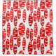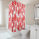 Esta cortina de chá tem um padrão repetitivo de ovais em vermelho e tijolo com ovais brancos dispersos.