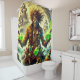 Esta cortina de chá artístico tem um homem de poção verde maluco nela fotografado.