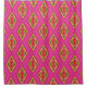Brighten your bathroom with this vibrant hot pink shower curtain featuring bold yellow diamond shapes and colorful accents.