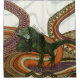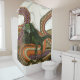 Figura verde ilustrada iguana e paisagem da floresta tropical abstrato, originalmente desenhada a tinta.