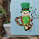 Uma coruja de celeiro giro vestindo um chapéu verde de duende com dois telhados