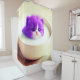 Esta cortina de chá tem um gatinho roxo giro nela.