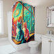 Esta cortina de chá fofa tem dois gatinhos olhando para a galáxia pela janela.