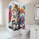 Esta cortina de chá tem arte gatinha nela.