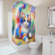 Esta cortina de chá tem arte gatinha nela.