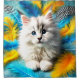 Esta cortina de chá tem um gatinho fofo nela fotografado.
