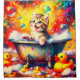 Adicione um toque de charme divertido ao seu banheiro com a cortina de chá "Kitten Bubble Bath". Este design encantador apresenta um gatinho bonito sentado dentro de uma banheira vintage com pés de palha, chegando em direção a bolhas flutuantes de sabão. Ao redor da banheira estão cinzas vibrantes e quatro patos de borracha, criando uma cena branca e viva. Perfeito para crianças e amantes de os animais, esta cortina de chá traz uma onda de diversão e energia para o tempo de banho, fazer-a uma experiência maravilhosa e memorável para todas as idades.