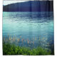 Esta cortina de chá tem uma fotografia de um belo lago.