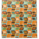 Esta cortina de chá tem um design moderno do século médio de retângulos arredondados inclinados para o lado com retângulos inclinados dentro feitos de linhas todas em cores da década de 1970.