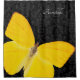 Borboleta amarela numa cortina chá preta de fundo cor damasco. Personalize esta cortina de chá elegante com o seu nome.