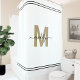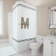 Cortina de banho personalizada com monograma elegante em letra cursiva e dourado branco. Esta cortina de banho elegante adiciona um toque luxuoso a qualquer banheiro com um design de monograma personalizado em um fundo branco crocante. Apresentando uma letra inicial cinza ousada e um nome em letra cursiva preta fluida, o design é acentuado com listras brancas duplas na parte superior e inferior para um detalhe refinado. Todas as cores são totalmente personalizáveis para combinar com o seu estilo e decoração do banheiro. Perfeita para casamentos, aquecimentos de casa ou aniversários, esta cortina de banho monogramada combina estilo com praticidade, adicionando elegância atemporal ao seu espaço.