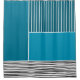 Esta cortina de chá tem um design geométrico de um retângulo alto grande no canto superior esquerdo, listras mais escuras no canto superior direito, um retângulo menor mais claro sob as listras e linhas pretas na parte inferior. Se você gosta do design, mas prefere cores diferentes, me mande mensagem.