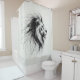 An der Wand hängt ein Löwenbild – stumm, doch kraftvoll. Sein Blick durchdringt die Stille des Raums wie ein Ruf. Digital Illustration- Schwarz-Weiß