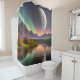 Lua pendurada sobre a paisagem montanhosa com Aurora Borealis refletida na água Autumn tree AI Art criada por minx267