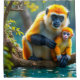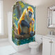 Esta cortina de chá tem um quadro legal de dois macacos nela.