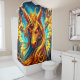Esta cortina de chá tem um unicórnio louco nela.