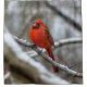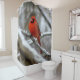 Um Cardeal vermelho brilhante adiciona uma pop de cor num dia de neve sonhador.