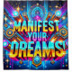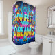 Esta cortina de chá diz "Manifesto seus sonhos" nela.
