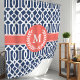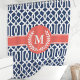 Melhore a decoração do seu banheiro com esta elegante cortina de chuveiro com treliça marroquina azul naval e coral. Com um padrão sofisticado e monograma personalizável, este design combina estilo clássico com um toque pessoal. A tela de alta qualidade garante durabilidade e fácil manutenção, tornando-a uma adição perfeita para qualquer banheiro moderno. Traga um acento único e elegante para o seu espaço com esta linda cortina de chuveiro.