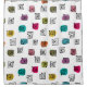 Esta cortina de chá tem um design moderno do século médio de labirintos dispersos, alguns com bolhas coloridas debaixo deles.