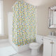 Se você está procurando animar sua casa de banho esta cortina de chá padrão de meio século divertida ajudará você a fazer isso! Este design apresenta formas e linhas de abstrato nas cores azul-turquesa, verde-abacate, laranja, castanho, azul e preto... e parecerá fab pendurado na frente da banheira.