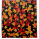 Autumn Midnight, mostra um padrão vibrante de folhas do outono em um fundo preto. As folhas são uma mistura de tons vermelhos, laranja, amarelo e dourados, representando uma variedade de espécies como carvalho, carvalho e castanheiro. "o contraste entre as cores vívidas das folhas e o fundo escuro cria um efeito marcante e dramático, enfatizando os tons quentes e o detalhe intrincado da folhagem. folhas menores, bolotas e galhos são espalhados ao longo, acrescentando profundidade e textura ao padrão. A design tem um sentimento enérgico e festivo de uma noite viva de outono.