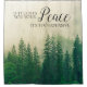 Cortina de chá com uma fotografia de uma bela sombra, montanhas nebulosas e florestas e texto inspirador, "Se te custa a paz é demasiado caro."
