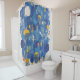 Cortina Para Box Modern Abstract Blue Raindrops Gold Accents