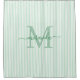 Add a touch of elegance to your bathroom with this personalised green striped shower curtain. Featuring a soft green and white striped background, the design is customised with your monogram initial and name in a fancy script font, creating a timeless and feminine look that feels both stylish and refined.