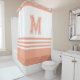 modern stylish white &peach initial monogram Peach ,Unique Personalized peach and White Name Monogram Shower Curtain