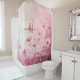 Cortina de Banho Rosa Monograma Chic Moderno com Letra Elegante para Casamento