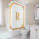 Borda do estilo chave grego laranja decorativa e monograma serif moderno em um fundo branco de cor sólida. Personalize este design de borda de linha mais fina com opções de cores favoritas para corresponder ao decoro do banheiro. NOTA: a borda foi projetada especificamente para esta cortina de chá. O gráfico não é um quadrado perfeito. Eu sugiro procurar outros produtos com forma quadrada na minha loja para uma fronteira para eles. Normalmente posso terminar as solicitações de transferência dentro de uma semana.