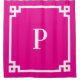 Borda decorativa do estilo chave grega branca e monograma serif moderno num fundo rosa magenta magenta quente de cor sólida. Personalize este design de borda de linha mais fina com opções de cores favoritas para corresponder ao decoro do banheiro. NOTA: a borda foi projetada especificamente para esta cortina de chá. O gráfico não é um quadrado perfeito. Eu sugiro procurar outros produtos com forma quadrada na minha loja para uma fronteira para eles. Normalmente posso terminar as solicitações de transferência dentro de uma semana.