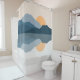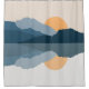 Abstrato de ilustração colorida do nascer do sol com montanhas azuis refletidas no lago