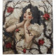 Mulher Gótica com Thorns e Rosa Cortina Chá. © Desejos do Coração Escuro. Esta cortina de chá gótica tem uma bela mulher gótica deitada em uma cama de sátira cera cercada por espinhos e rosas vermelhas.