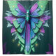 O meu design retrata uma criatura vibrante e muito diferente, fantástica, que se assemelha a um híbrido entre a borboleta e uma mantis de oração e mais. A criatura fica ereta sobre um par de pernas finas e segmentadas, cercadas por folhas verdes e peludas. Seu corpo é composto por um conjunto de pétalas e folhas coloridas, em camadas, dando a ele uma aparência floral. As asas são grandes e luminosas, apresentando gradientes de púrpuras, azuis e verdes com um padrão impressionante, simétrico e contornos escuros. A cabeça da criatura é pequena e alienígena com grandes e brilhantes olhos cor-de-rosa, acrescentando uma sensação de mistério e de outra linhagem do mundo. Acima da criatura, uma lua celestial brilhante com um design de espiral brilha intensamente no fundo escuro e folheado, melhorando a atmosfera mágica e encantadora da cena.