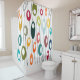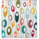 Esta cortina de chá tem um design moderno do século médio de ovais em cores retrógradas em linhas pretas curvas.