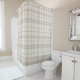 This taupe plaid shower curtain with a linen-like texture gives your bathroom a warm, calm upgrade with just the right amount of subtle pattern. The muted taupe tones feel cozy and refined, pairing easily with white tile, warm wood, stone neutrals, and black or brass fixtures. Perfect for modern farmhouse, cozy cottage, rustic minimalist, or neutral spa-inspired bathrooms when you want something timeless, soft, and quietly stylish.