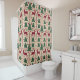 Cortina de Banho Rústica Bege de Natal Escandinavo Com Árvores Verdes e Veados Vermelhos