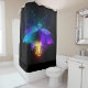 Voz mecânica, antiga, com lâmpada e asas finas brilha cor de laranja, roxo, turquesa sobre fundo preto. Estilo Steampunk.