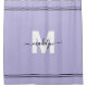 Cortina de Banho Feminina com Nome Monograma Personalizado em Letra Elegante e Cor Roxa Clara. Esta cortina de banho elegante adiciona um toque luxuoso a qualquer banheiro com um design de monograma personalizado em um fundo roxo claro suave. Apresentando uma letra inicial branca em negrito e um nome em letra cursiva preta fluida, o design é acentuado com listras brancas duplas na parte superior e inferior para um detalhe refinado. Todas as cores são totalmente personalizáveis para combinar com o seu estilo e decoração do banheiro. Perfeita para casamentos, aquecimentos de casa ou aniversários, esta cortina de banho monogramada combina estilo com praticidade, adicionando elegância atemporal ao seu espaço.