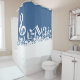 Divertido no banheiro, cante para o conteúdo do seu coração sabendo que o chão do seu banheiro estará livre com esta cortina de chá de música apresentando notas musicais brancas embaralhadas e uma grande clave tripla em azul de ardósia