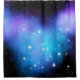 Cortina de chá de galáxia com uma abertura cósmica de nuvens espaciais nebulosas azuis e roxas e estrelas cintilantes num céu noturno negro. ♡ Idyllfire