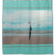 Um guarda-chuva está preso na areia, na praia diante do mar com muitas ondas e cores suaves
