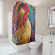 Esta arte de galo é uma visão vibrante a se segurar! A criatura de penas está orgulhosa e majestamente em meio a um caleidoscópio de cores vivas.