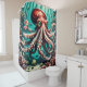 Cortina Para Box Octopus cômodo sob o mar vermelho e azul