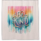 Melhore o ambiente do seu banheiro com uma cortina de chá vibrante e divertida adornada com pingos de tinta alegres e a mensagem elevatória 'Seja gentil' colocada contra um pano de fundo dinâmico, completa com detalhes deliciosos e coloridos de pontos.