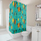 Esta cortina de chá tem um design atômico moderno do século médio de diamantes, e estereótipos em um campo de turquesa.