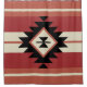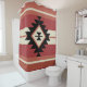 Padrão étnico boêmico asteca com formas geométricas em vermelho, laranja, cinza e cores pretas em fundo listrado